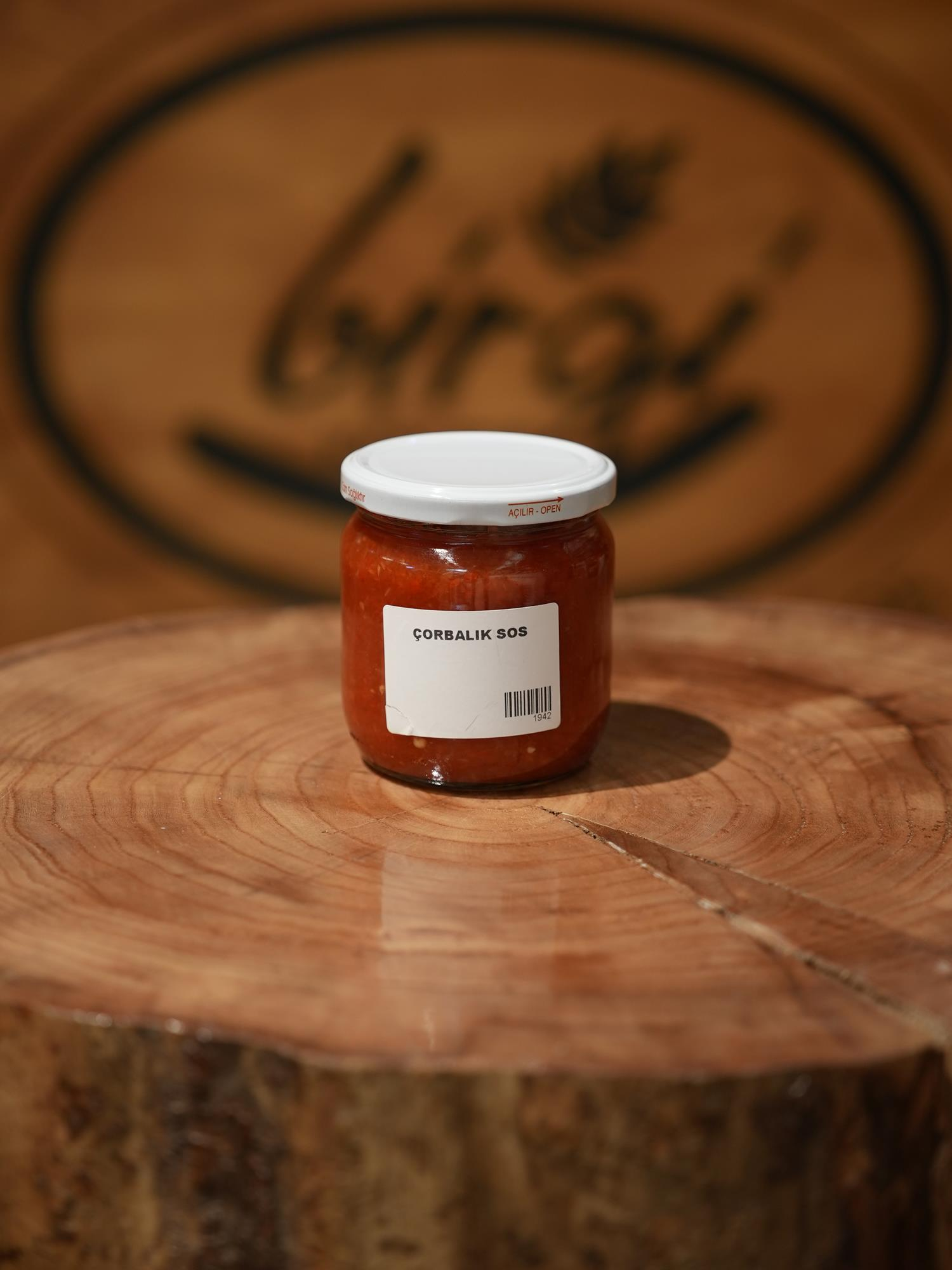 Birgi Köy Evi’nin doğal mutfak lezzetlerinden biri olan Çorbalık Sos, sofralarınıza pratiklik ve sağlık katıyor. 450 gr’lık cam kavanozda özenle hazırlanan bu sos, tamamen doğal yöntemlerle seçilmiş taze domates, biber ve baharatların harmanlanmasıyla üretilir.